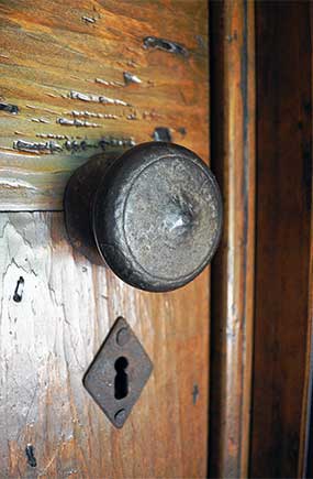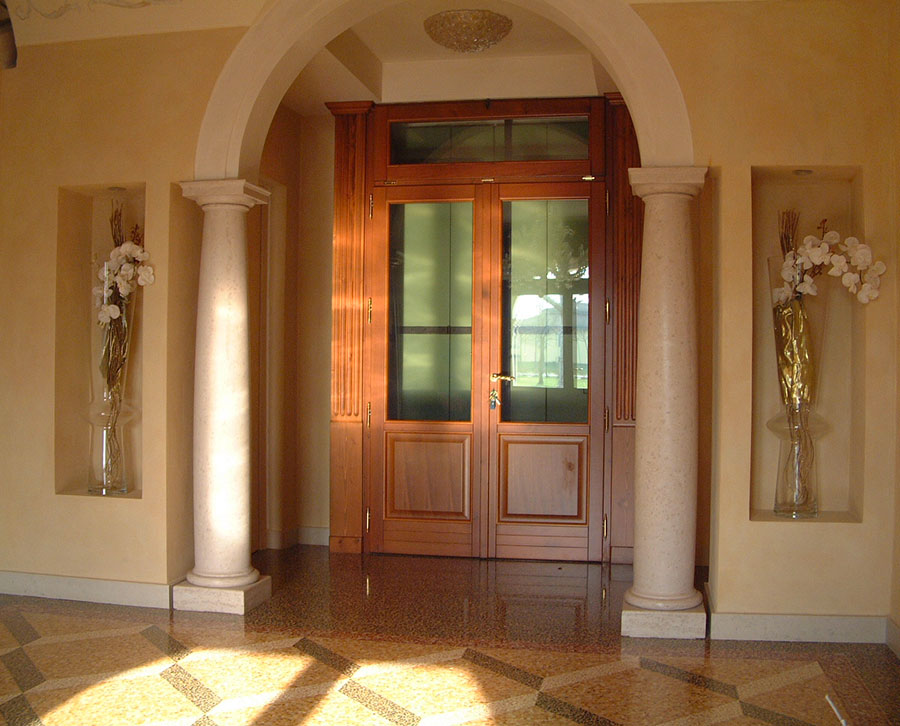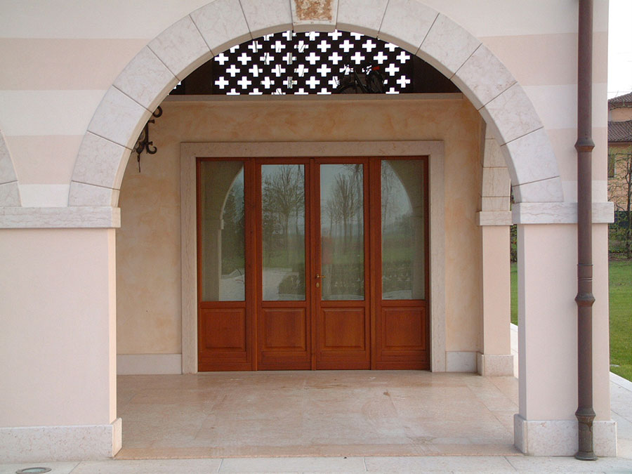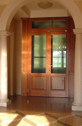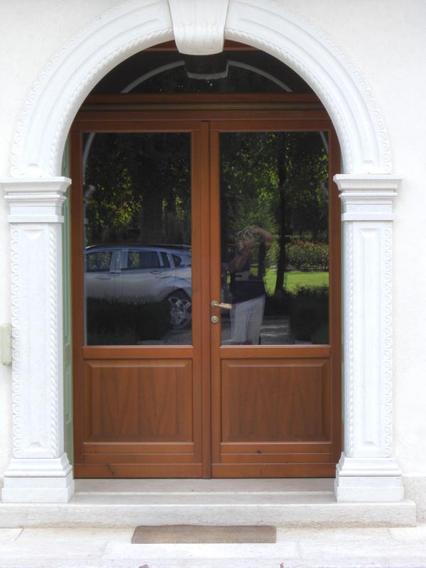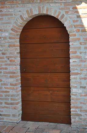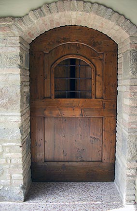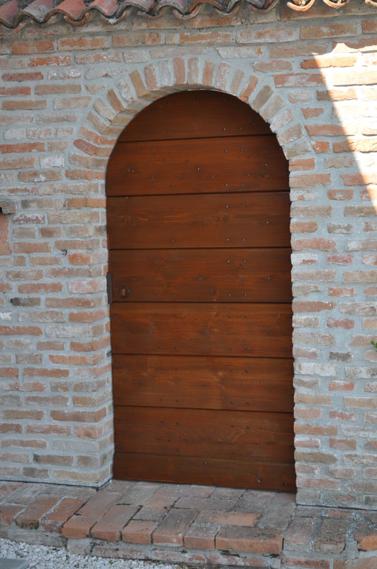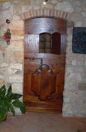 in legno di noce piallata a mano con catenacci originali e finestrella completa di inferriata e sportellino in ferro battuto